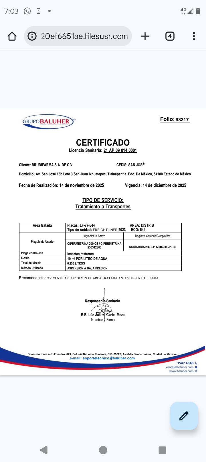 Certificado de F.
